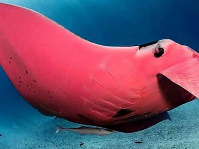 澳大利亚昆士兰州海岸85公里外艾略特夫人岛旁罕见粉色蝠鲼“克鲁索探长”再次现身(...
