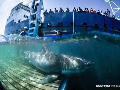 这只鲨鱼去年在加拿大新斯科舍省海岸附近被安装卫星定位(Photo: OCEARCH)(神秘的地...