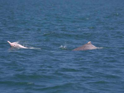 经过一年监测海保署公布白海豚监测调查数据,族群维持平稳,幼体5~8只,并将信息公...