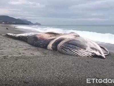 世界第2大动物长须鲸在台东搁浅海滩死亡