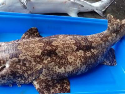 台东新港渔民捕获罕见底栖鲨鱼“波口鲎头