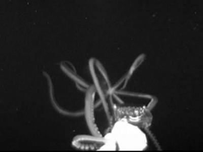 美国国家海洋及大气总署深海考察队在墨西哥湾拍摄到深海巨乌贼 半小时后竟遭雷击(...