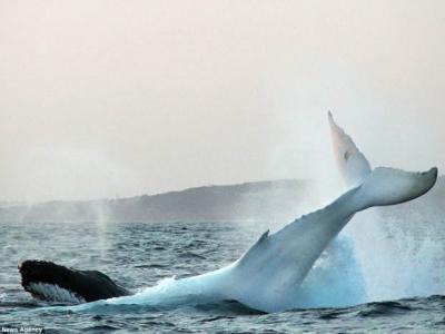 全球唯一白色座头鲸再现澳洲海域视频:白色座头鲸米...