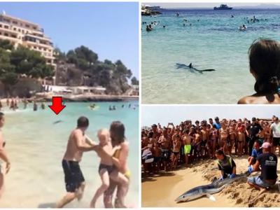 蓝鲨游近西班牙旅游胜地马略卡岛,因伤遭人道毁灭(...