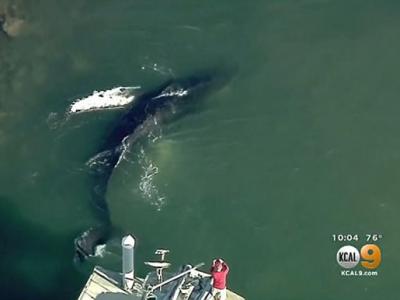 美国加州座头鲸误入海港,靠救援人员水中听音器声波...