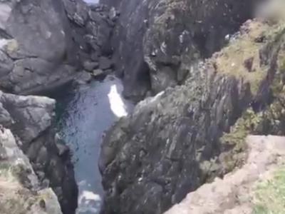 鲸尸位于断崖下,专家无法靠近。鲸尸估计重约55吨。...
