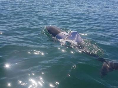 澳洲宽吻海豚被穿蓝色T恤 气孔恐随时被遮