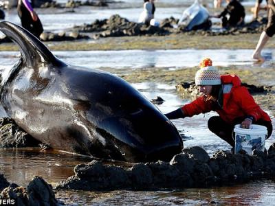 400头领航鲸搁浅新西兰“送别角” 仅100