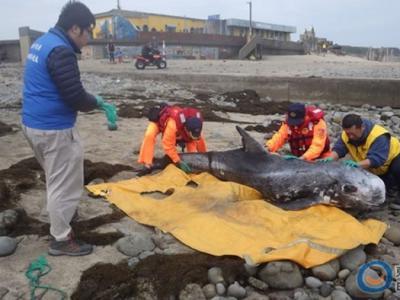台湾新北市老梅沙滩发现瑞氏海豚搁浅死亡(神秘的地...