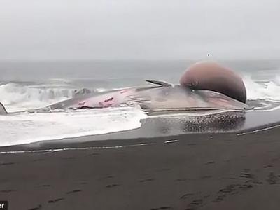 智利沙滩搁浅鲸鱼尸体 头部肿胀吓煞人