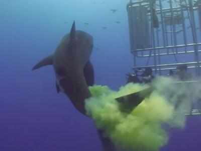 大白鲨朝防鲨笼游去,然后发起大便攻击 视频:大白鲨朝防鲨笼游去,然...