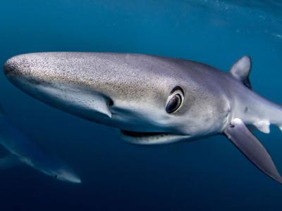 大青鲨英伦海峡觅食 与潜水员互动畅游