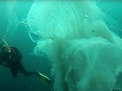 潜水员在墨西哥巴亚尔塔港外水域遇上罕有巨大水母 视频:潜水员在墨西哥巴亚...