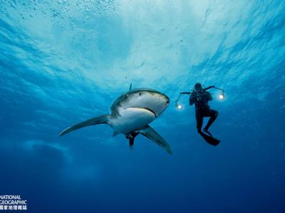 电影制作人乔.罗米洛捕捉到猫岛外海一只污斑白眼鲛的特写画面。这种鲨鱼贪婪嗜血...