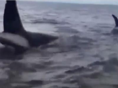 俄罗斯渔民救起两条搁浅的杀人鲸