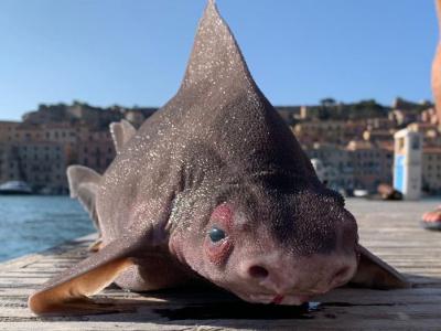 一条尖背角鲨从托斯卡纳附近的意大利岛屿厄尔巴岛附近的水中被拉出。(图片来源:u...