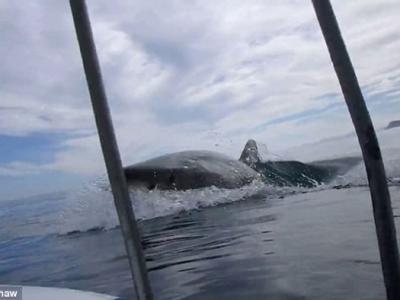 大白鲨在防鲨笼前“表演”,给南非潜水客惊喜 视频:大白鲨在防鲨笼前“...