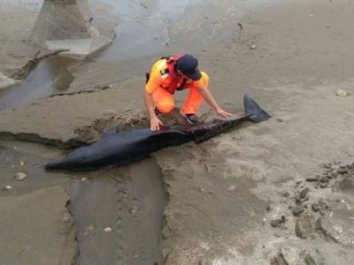 瓶鼻海豚疑被鲨鱼攻击搁浅台湾新屋沙滩死亡