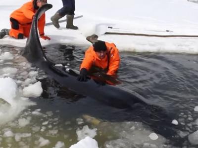 俄罗斯鄂霍次克海4只虎鲸被困充满冰与岩石的浅湾,人狗奋力营救8小时 ...