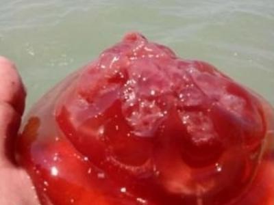 吉胆岛惊现红色水母。 红色水母的来历目前依然不明。 渔民捕鱼拖网时,拖上...