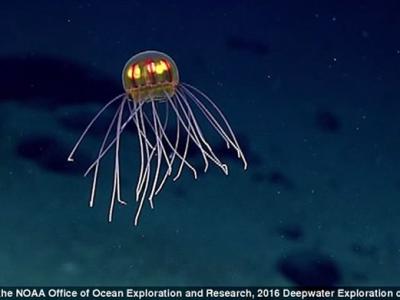 研究人员在马里亚纳海沟进行勘测活动,发现一种类似球状的水母新物种,此...