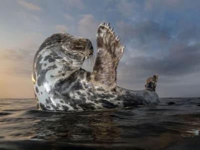 黑尔戈兰岛母海豹夕阳下与摄影师挥手道别 (神秘的地球uux.cn报道)据ETt...
