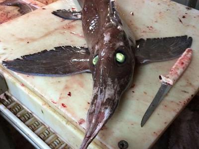 加拿大海域捕获“目露凶光”的罕见“怪鱼”长吻银鲛 之前在北大西洋捕获的史前...
