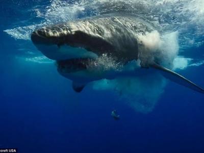 摄影师Elke Specker用金枪鱼做诱饵拍摄到大白鲨跃出海面猛烈撕咬的瞬间 ...