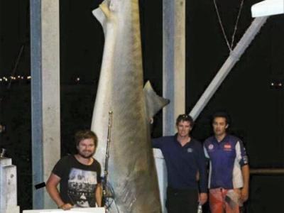 澳大利亚渔民捕获已知世界最大虎鲨 遭网