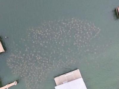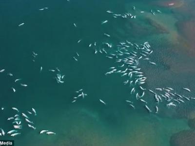 美国游客拍到佛罗里达州海岸数十条鲨鱼疯