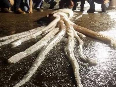 西班牙渔夫捕捉到10米长巨型鱿鱼
