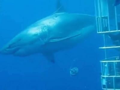 南非发生大白鲨撞击观光笼企图袭击游客事件