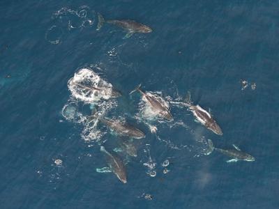 南非摄影师在开普敦近海用无人机拍摄到数十头座头鲸聚会捕食磷虾的壮观画...