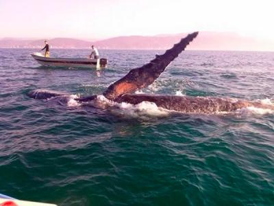 巴西鲸鱼获救开心跳跃感谢人类解救