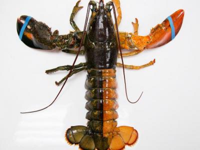 这只半橘半棕的双色龙虾——还活跳跳的——日前在缅因州的斯卡波罗被拍摄下来。 ...