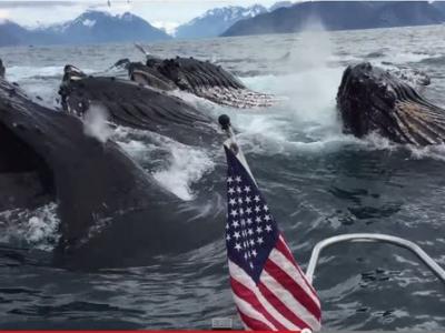 美国阿拉斯加复活湾数十头座头鲸突然冲出
