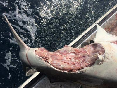 澳大利亚渔民展示鲨鱼身体残骸照片 称当