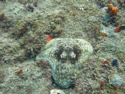 加勒比海伪装成暗礁的章鱼受惊扰后变成铁