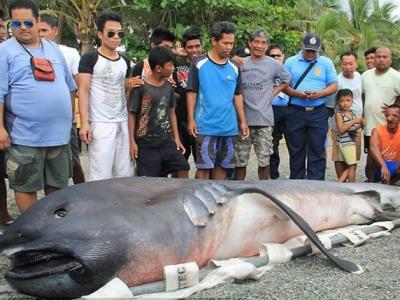 菲律宾渔民在中部海岸发现一条巨口鲨尸体
