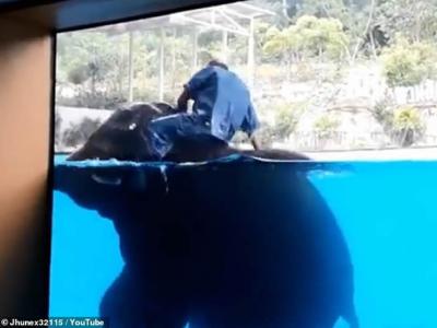 泰国动物园逼大象水中表演 保护动物人士斥训练过程残酷视频:...
