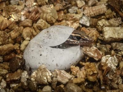 动物园成功孵出百慕大石龙子。初生的石龙子极为细小...