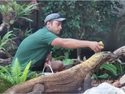 澳洲珀斯动物园科莫多龙日光下淋浴
