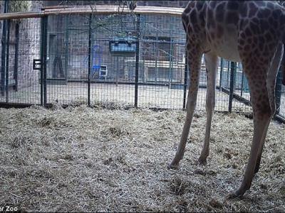 英国柴郡切斯特动物园公布珍贵画面:母长颈鹿站着生...