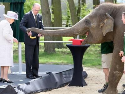 大象急不及待与英女王及菲腊亲王(左一及二)“握手...