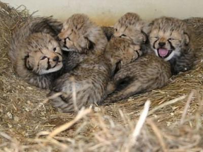 猎豹宝宝依偎在一起。猎豹宝宝十分活泼。研究人员相...