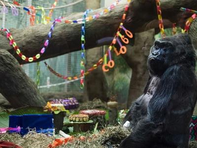 科洛享受它的生日会。有不少人到动物园作祝贺。科洛...
