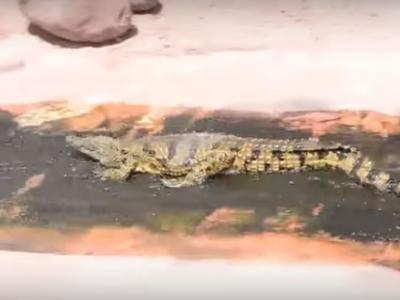 摩洛哥动物园鳄鱼玩水滑梯