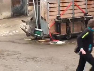 荷兰埃门动物园一头非洲白犀牛突然夺笼而出,吓得饲养员赶紧逃命 (神秘...