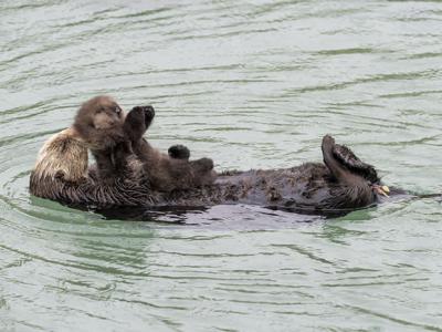 美国加州野生水獭妈妈喜获麟儿兴奋高举