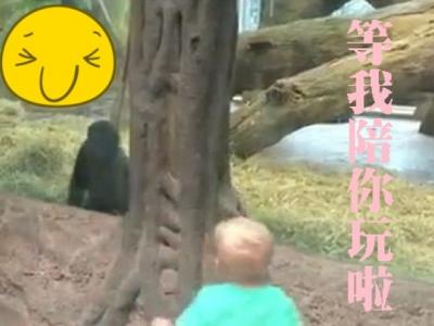 美国动物园内小童与大猩猩隔着玻璃玩捉迷藏